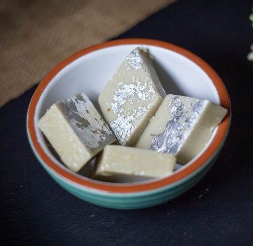 A silky and luxurious Indian sweet made from ground cashews, sugar, and cardamom. Mildly sweet and nutty, this diamond-shaped dessert is a perfect gift for special occasions.
